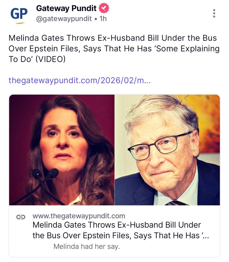 https://www.thegatewaypundit.com/2026/02/melinda-gates-throws-ex-husband-bill-u... View More