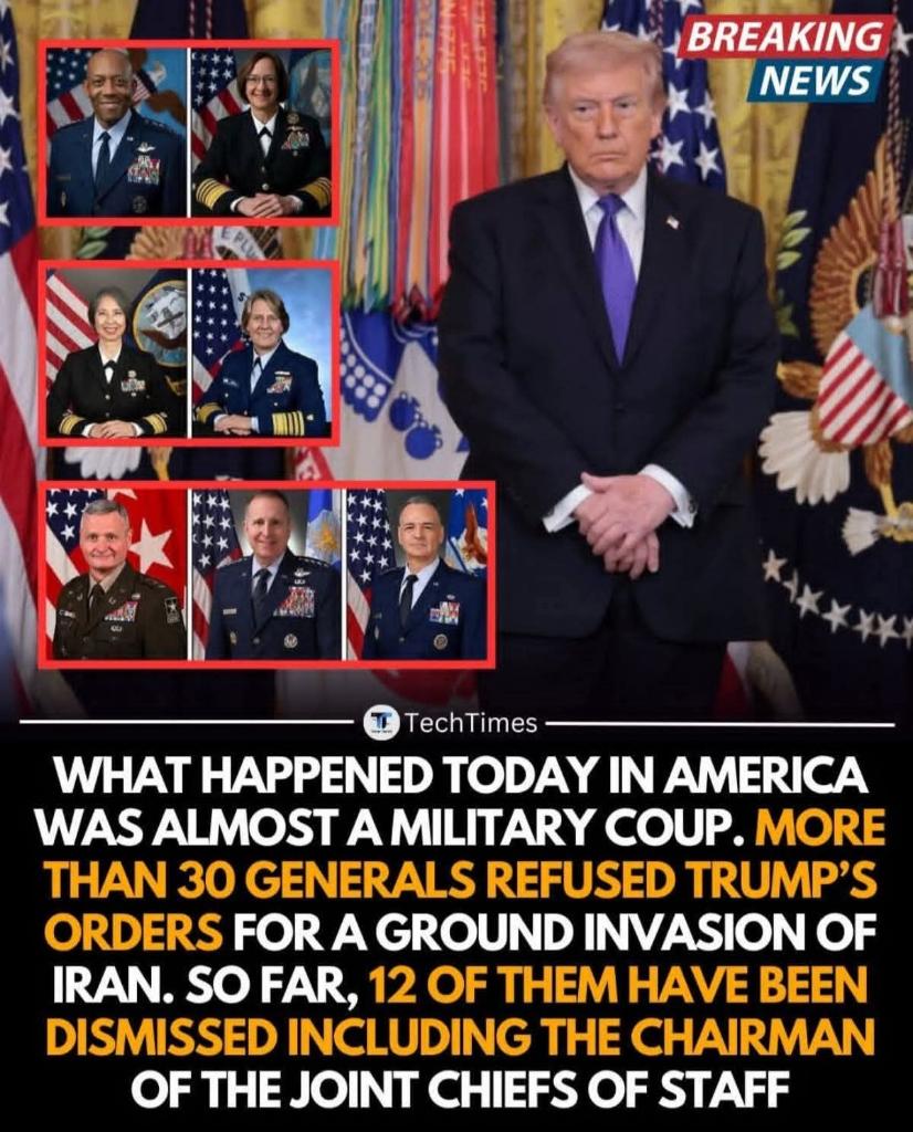 This is unverified and probably not true. There were 3 generals asked to step down on Thursday. No reason was given. However this seems to be an ongoing process of command change that starte in 2025 after Hegseth's appointment.