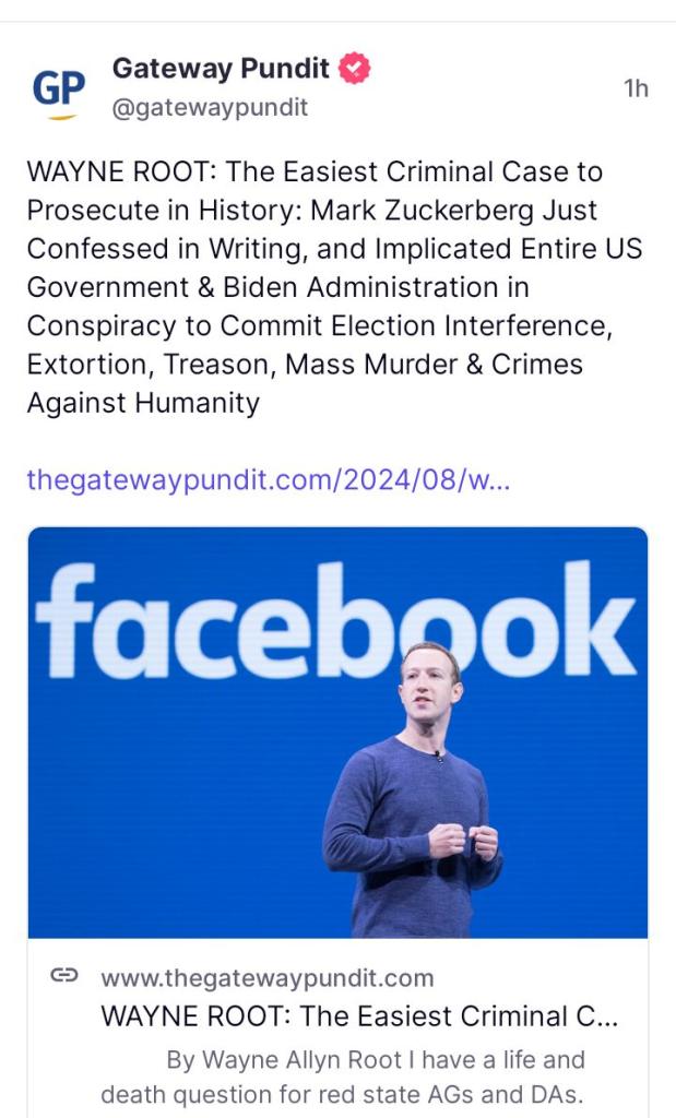 WAYNE ROOT: The Easiest Criminal Case to Prosecute in History: Mark Zuckerberg Just Confessed in Writing, and Implicated Entire US Government & Biden Administration in Conspiracy to Commit Election In... View More