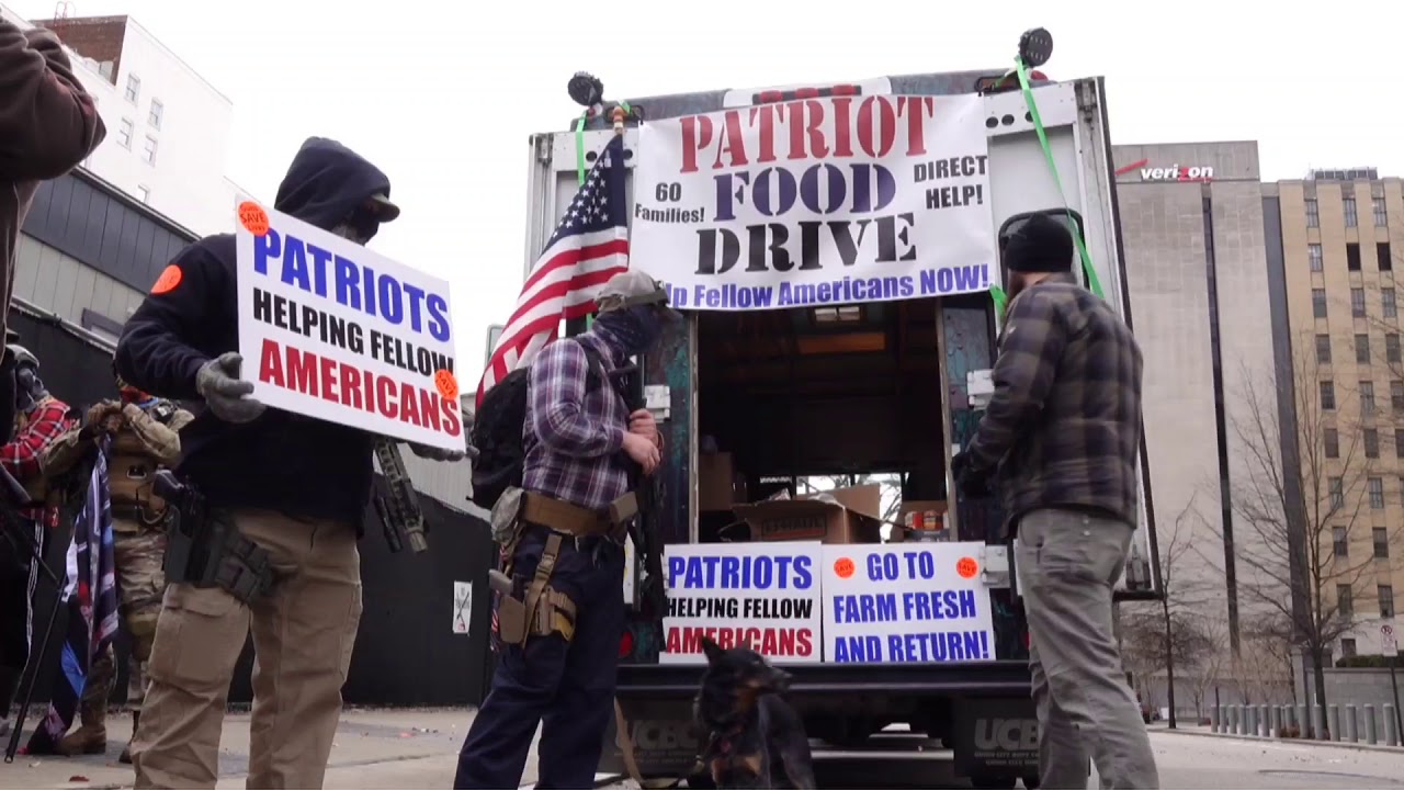 January 18 2021 - RICHMOND, Virginia: Patriots Food Drive, a non-affiliated group of American citizens, collected canned goods for the needy as different groups came together near the state capitol to