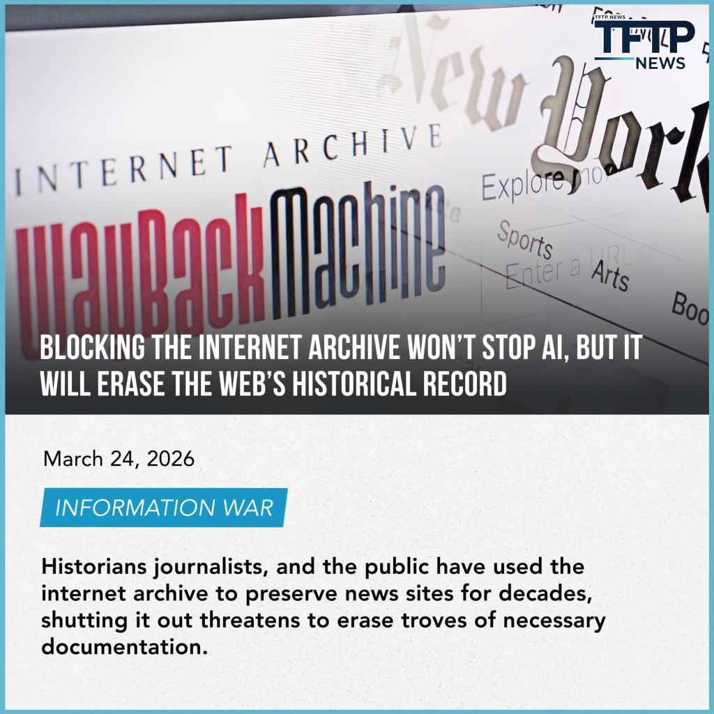 Read More: https://thefreethoughtproject.com/information-war/blocking-the-internet-archive-wont-stop-ai-but-it-will-erase-the-webs-historical-record