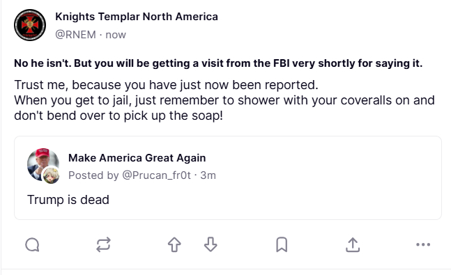 Death Threat made against @POTUS moments ago on TruthSocial