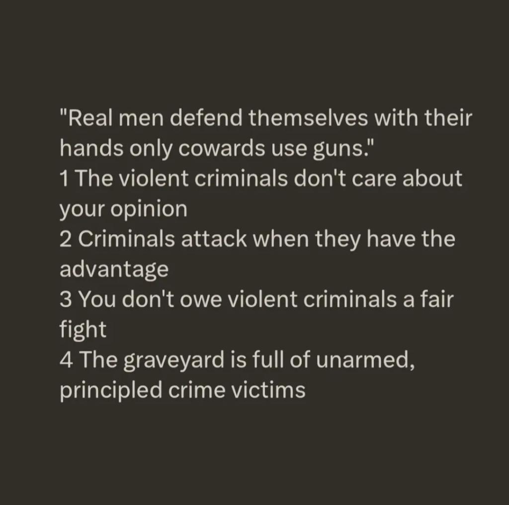 Only a fool would think a man defends himself with only his hands ..you want rules join the boxing club personally IDC who uses what either walk away or fight to win but don't be a bully or the agressor