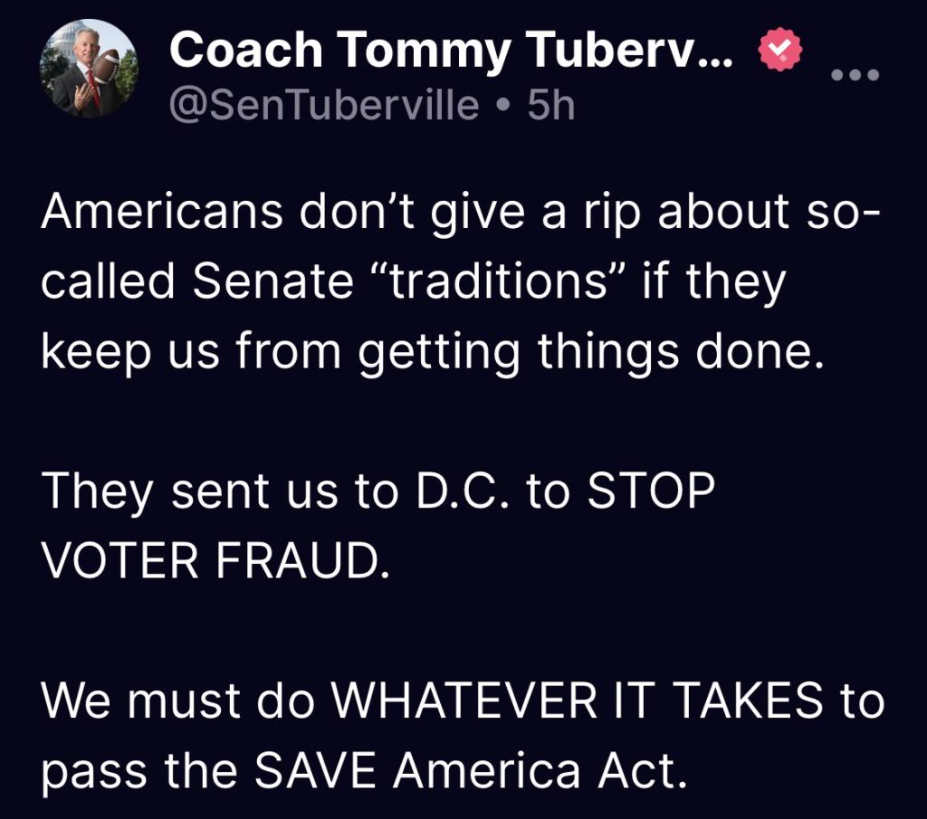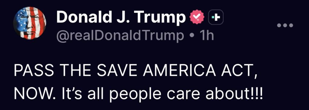 If you are a Republican and vote no or refuse to vote for the Save Act , your political career is over , done , kaput..