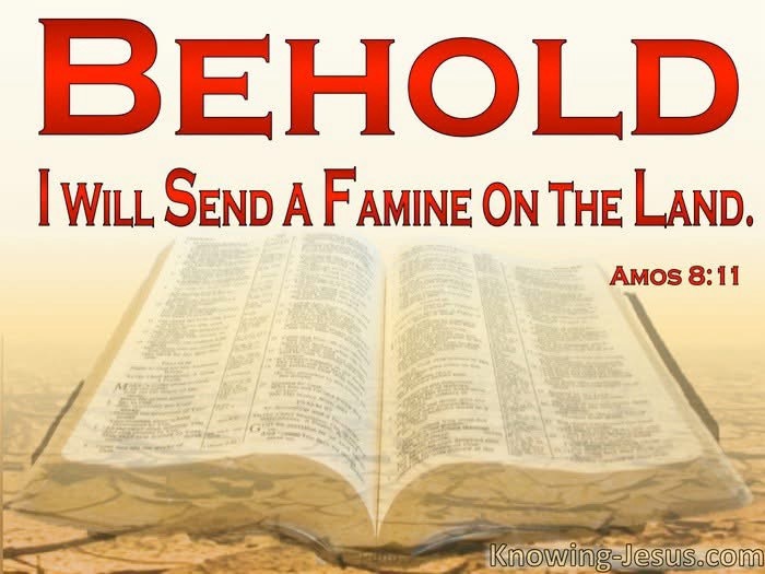 "Behold, the days come, saith the Lord GOD, that I will send a famine in the land, not a famine of bread, nor a thirst for water, but of hearing the words of the LORD:"