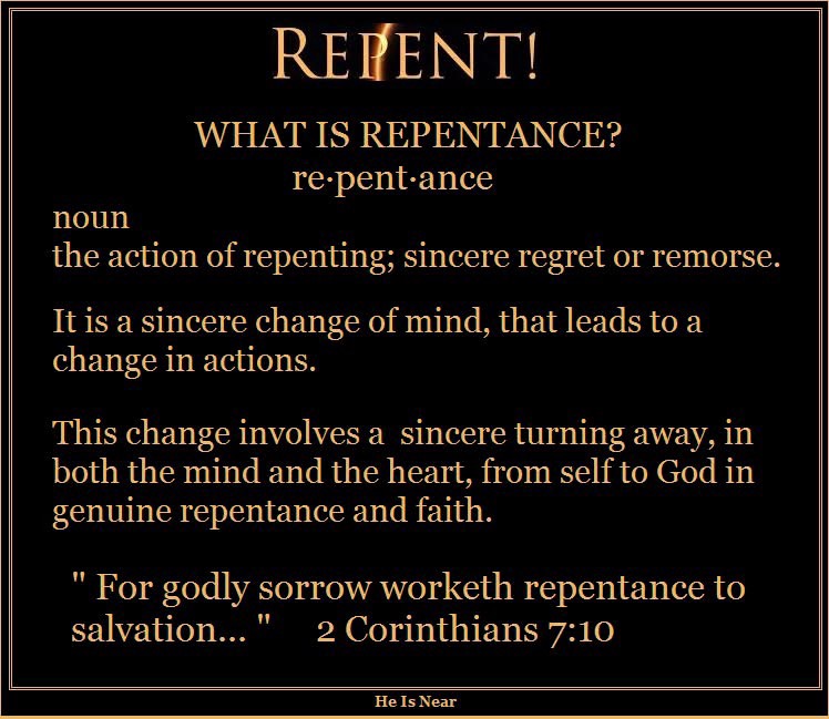 In repentance, Paul says that godly grief should occur. To have godly grief is to have remorse for sin, which is to show deep sorrow and regret over sinning against God. When this occurs, you will be grieved into repenting. And because it is a godly grief – a grief that doesn't just acknowledge wrongdoing, but also admits crime and offense against God – it produces repentance that leads to salvation, for it leads to a confession of sin and an acceptance of the gospel. Remorse for sin is sour, but it leads to the sweetness of the gospel.