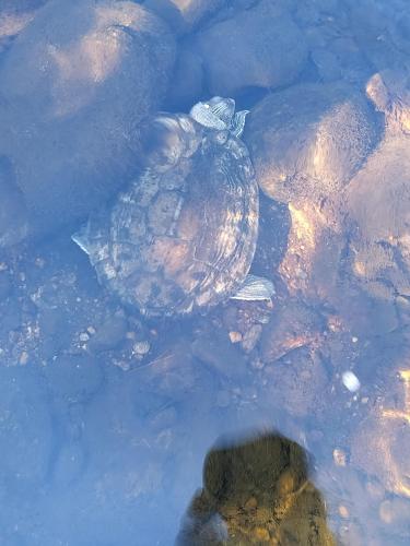 My turtle swimming in the river behind my house