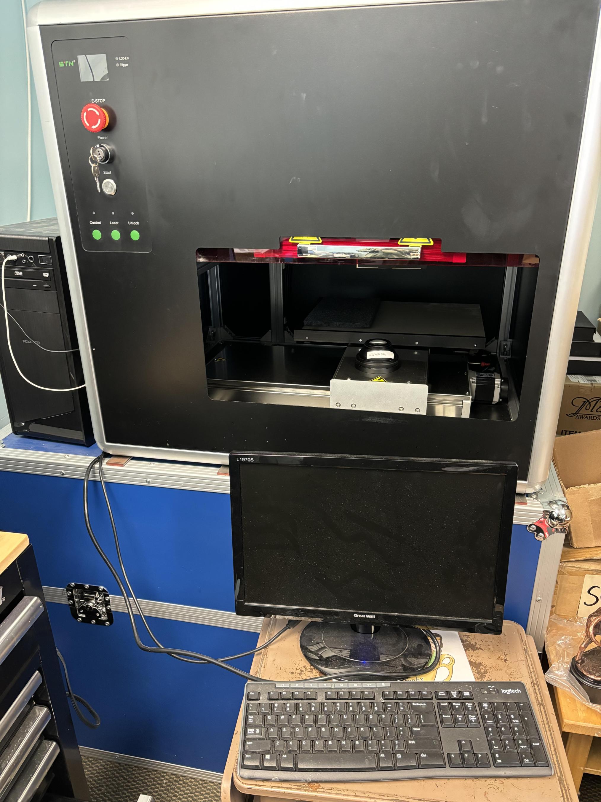 It currently doesn't function due to the mirrors needing a cleaning and re-alignment as it only started acting up after the mirrors were cleaned. Comes with software and key, and massive case that it'... View MoreIt currently doesn't function due to the mirrors needing a cleaning and re-alignment as it only started acting up after the mirrors were cleaned. Comes with software and key, and massive case that it's sitting on (in the pictures), along with instructions for operation. An experienced laser technician could likely get it working in no time flat. Orignal cost was $21,000. Lens is in perfect condition (see photos).