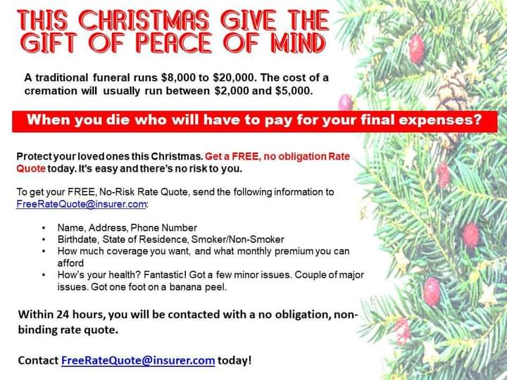 Contact me for a free quote and to see if you qualify. No credit card or social security number required for a quote.