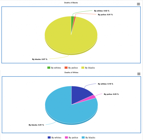 The number of blacks in the USA is 13.4%. So the chart be honest, the number of black shot to death by police should be much lower.