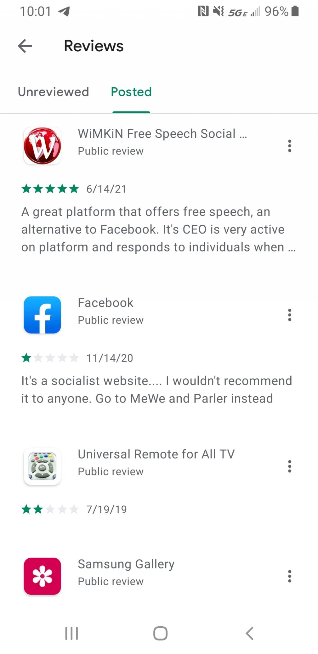 My rating on Google play... Faciousbook was my last rating when I left it in November. I left MeWe not much longer after that...