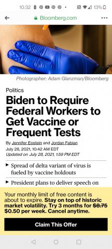 Vaccines for Federal Government workers. How can idiot Biden even force people to test if the PCR test is FAKE?! And there is no test for any varient, know why? BECAUSE IT'S ALL A BUNCH OF BULLSHIT! The PCR test was used to get CONTROL. We see how well it worked because people have been COMPLYING!!!... View More