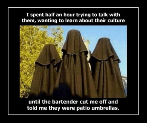 I think they should make a law! If they are going to come to our country, and I say OUR country they need to takeoff that head dress and the facemasks, when I see that I think terrorists!!!!