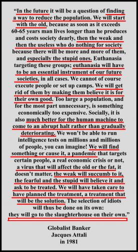 I found this, which would explain why they are lying about and pushing the vaccines so hard. It is a goal of the New World Order which biden believes in . . .