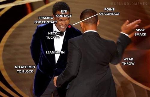 Will Smith was laughing it all up until his wife gave him a look as if to tell him to do something or she will. So he slapped Chris Rock and mouthed off like he was actually that pissed off. Give me a break here. Will Smith is a disgrace. If that would have been me, I would have asked Chris Rock to stop because my wife was not having it. I would have had Will Smith arrested for assault.
