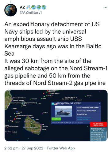 Look.. A US detachment was near where the sabotage of the pipeline took place. Europe is not happy and is already blaming America. We cannot jump to conclusions but its worth keeping an eye on this situation. This may escalate. Russia already wants an independent investigation as do Denmark..