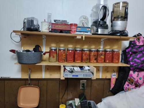 Spaghetti sauce: tomatoes and onions from the garden, Italian sausage made from one of last year's deer.