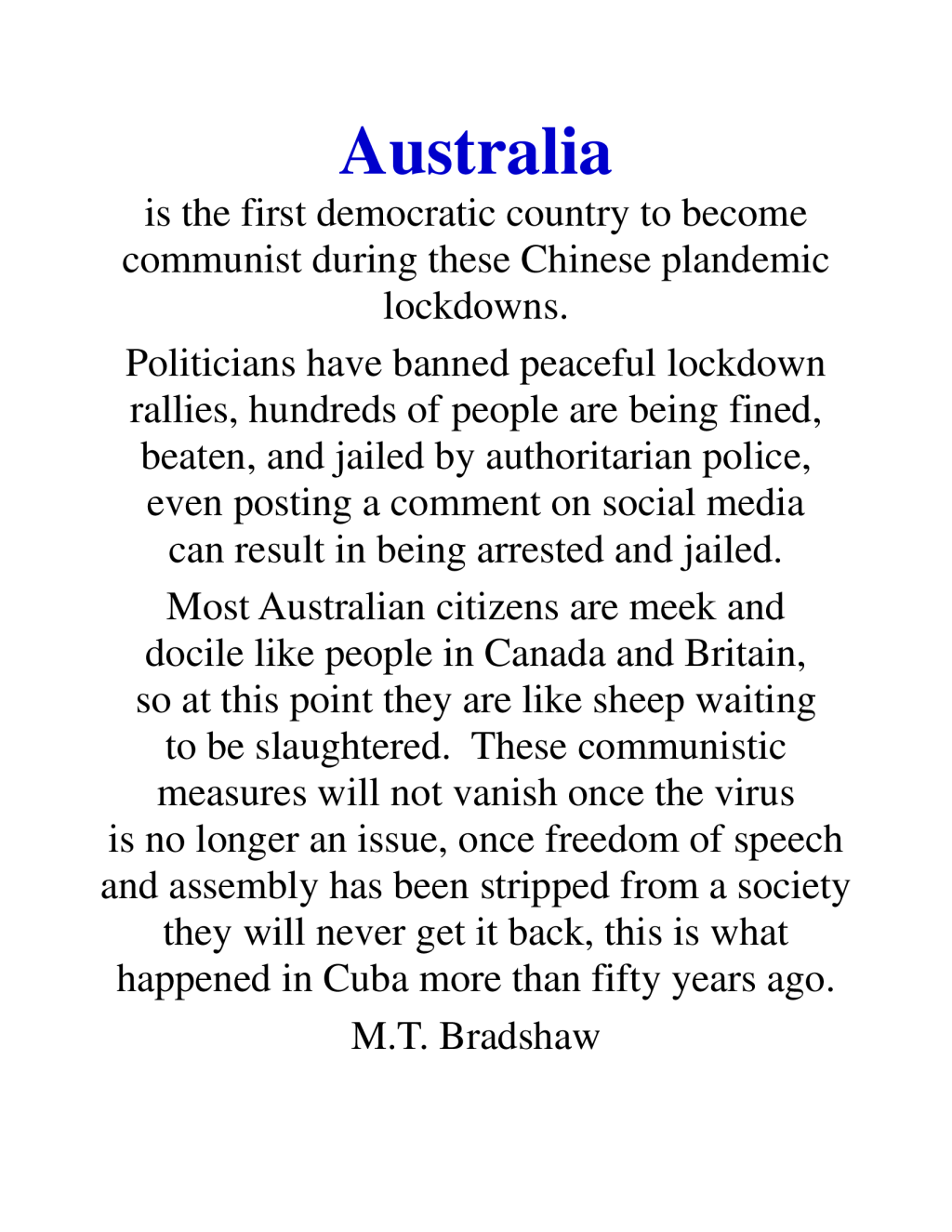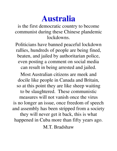 Will the citizens of Australia be able to overcome the present introduction of socialism in their once great nation?
