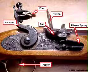 Most revolutionary war soldiers used flintlock or matchlock rifles. Caps weren't invented until much later in the early 1800's. Instead of "popping caps" you could say "flash a pan".