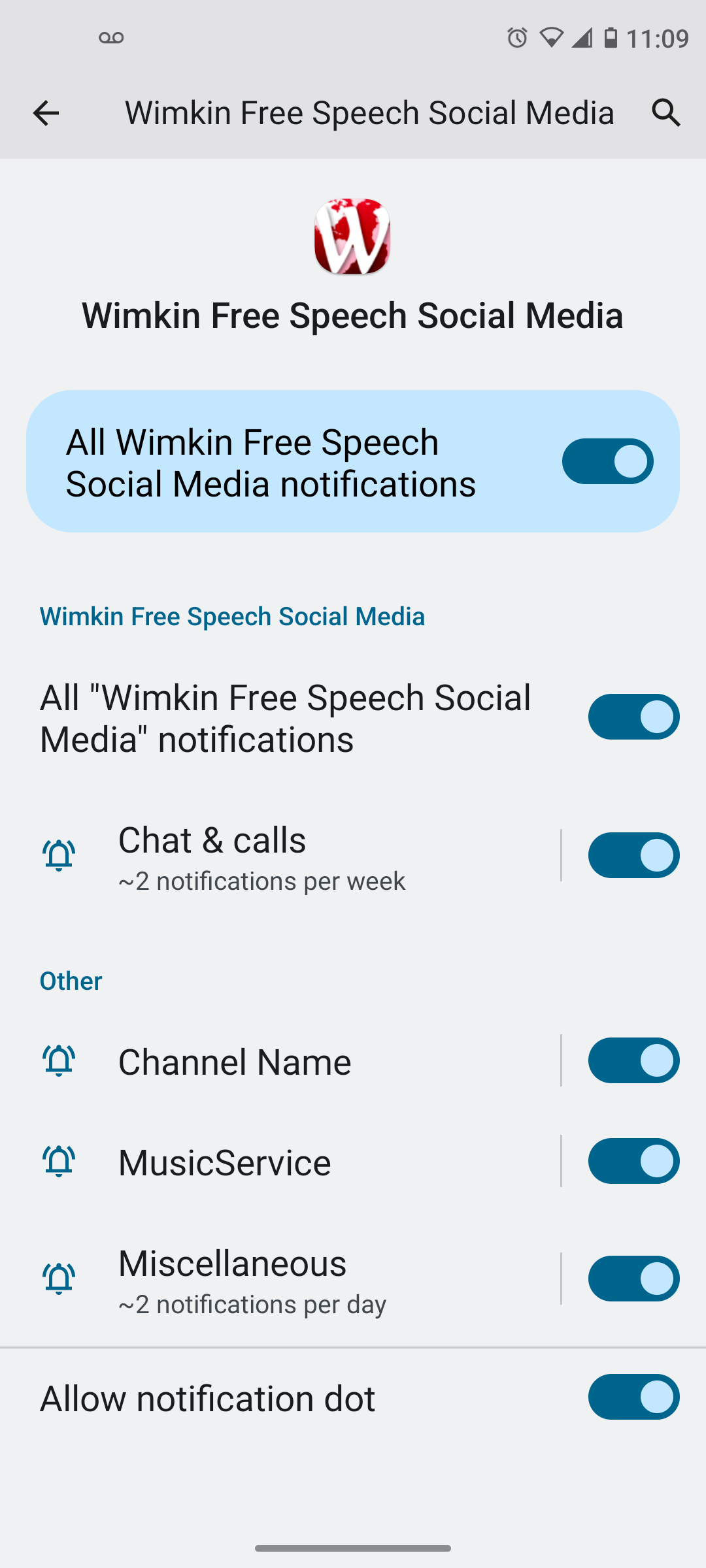 My phone doesn't have an option for push notifications. But it says all notifications turned on for Wimkin so is that right?