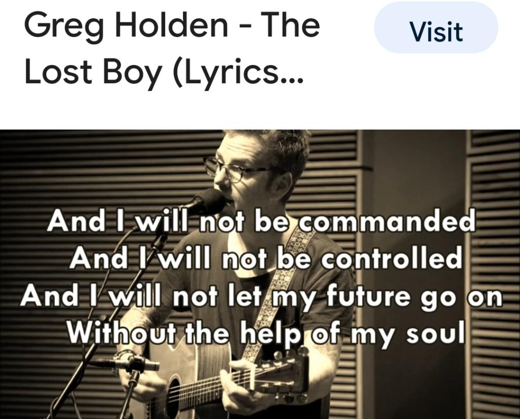 The lost boy by Greg Holden...great song it's on my playlist