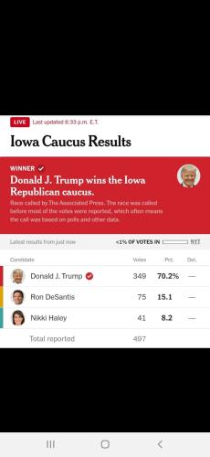 Donald Trump projected to WIN the 2024 Iowa Republican caucus: Ex- president, 77, storms to historic victory over rivals Ron DeSantis and Nikki Haley