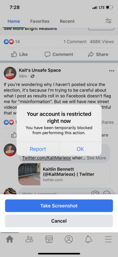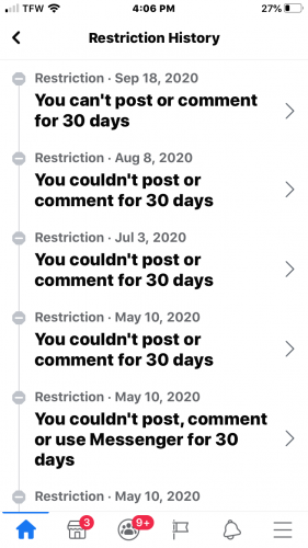 Check this out! No warning! Just temporary blocked for the past 26 days! Fuck fakebook! No loss here!