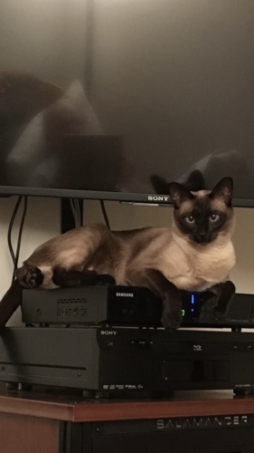 My Feline Hogging The Cable Box…..