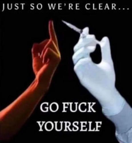 Hey Joe! Take your vaccines and shove them straight up your ass! Have Jill do it for you, she obviously has a lot of experience with assholes.