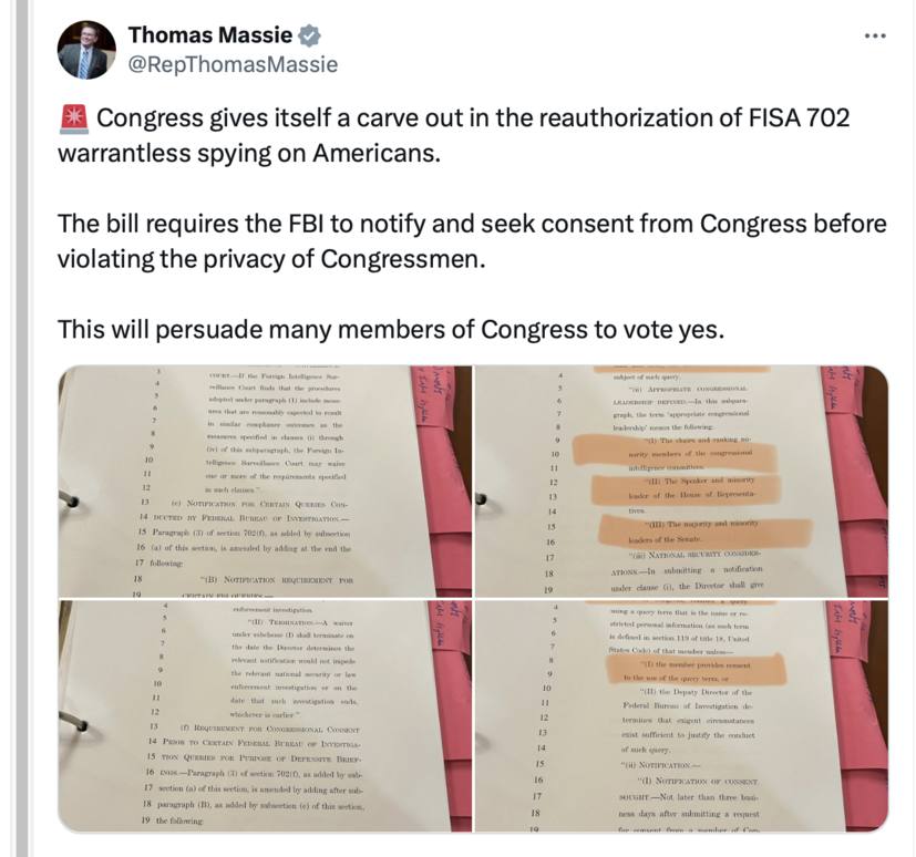 Just so you're clear.. The uniparty in Washington DC are giving the FBI power to spy on you, for any reason.. without a warrant but they exempted themselves from the same law....