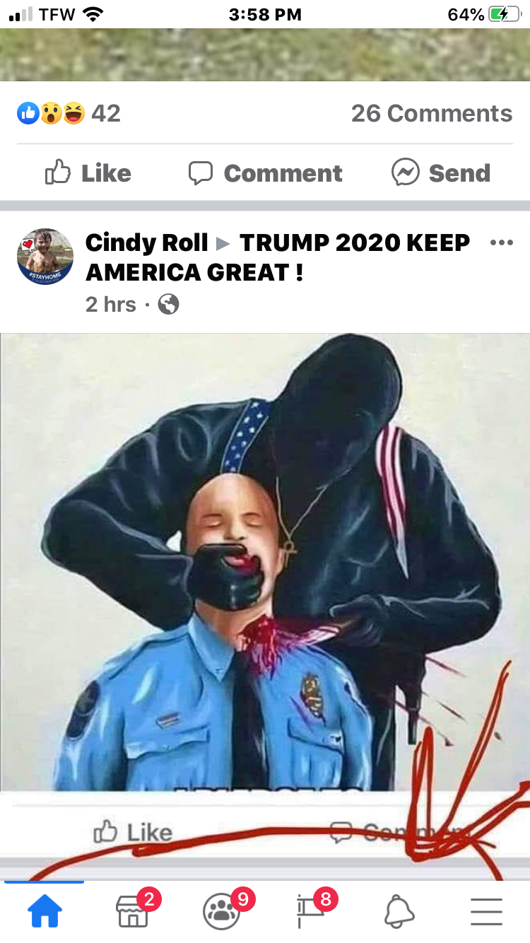 I reported it many months ago on fascistbook and they allowed it . While banning Pro Blue line Groups .