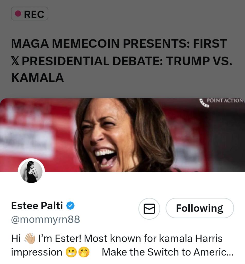 Hillary-arious debate on XTrump and Harris impersonators doing it.https://x.com/i/spaces/1MYGNMRLBNoKw