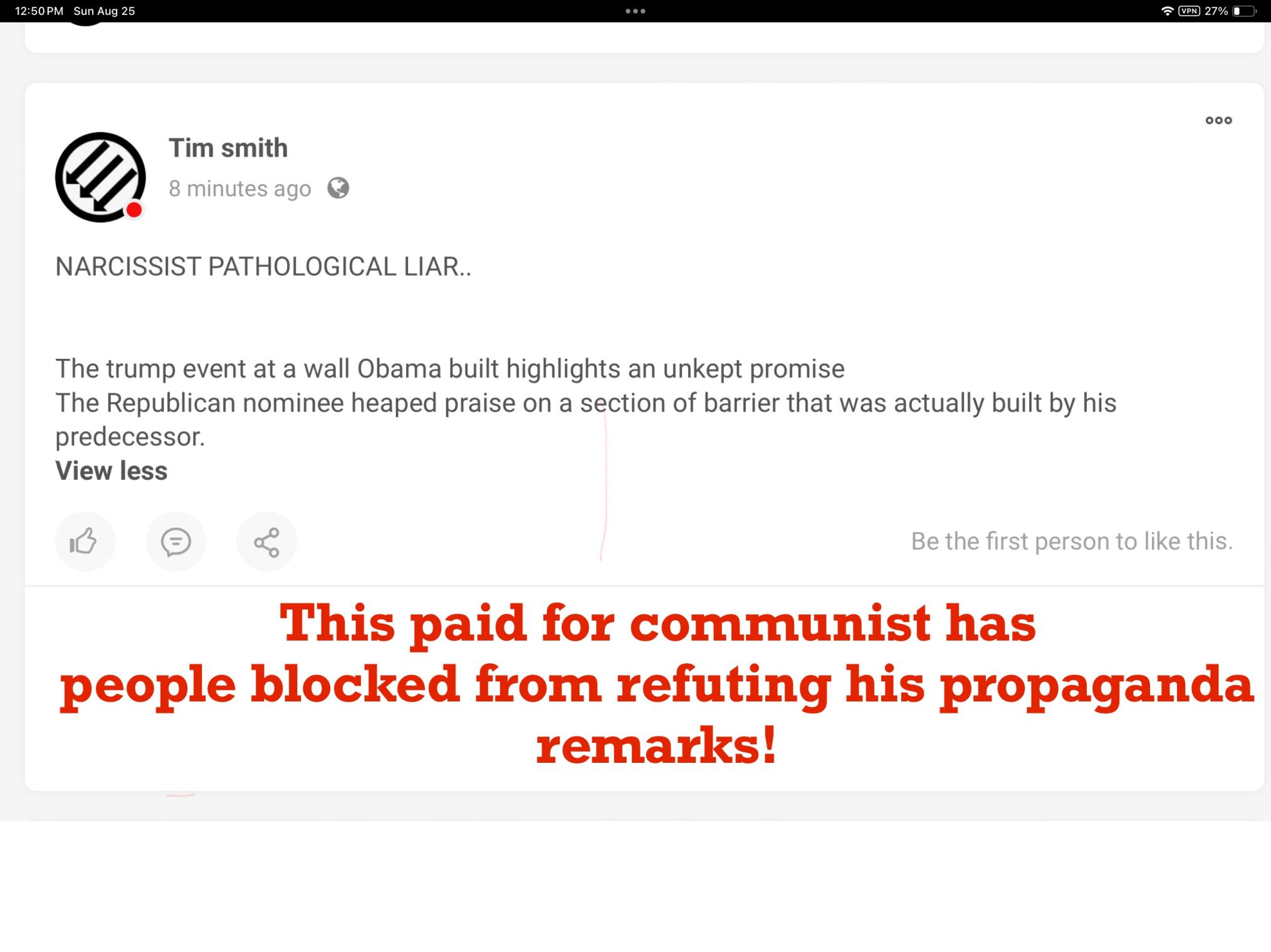 Are you ignoring any questions that you don’t now how to answer Jason?……. Is your platform compromised by people blocking content that they don’t like and you’re allowing to occur? …….I can understand the person blocking someone from posting on their page but posting a screenshot of a post they made... View More