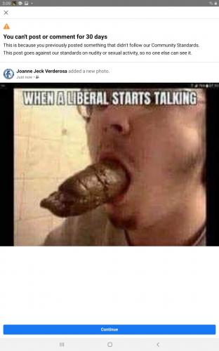 Same here for the same exact post. 30 days in the hole friend. Screw fascistbook, hello Wimkin.