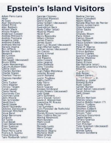NAMES ON JEFFREY EPSTEIN "LOLITA EXPRESS" FLIGHT LOG & VISITOR LIST