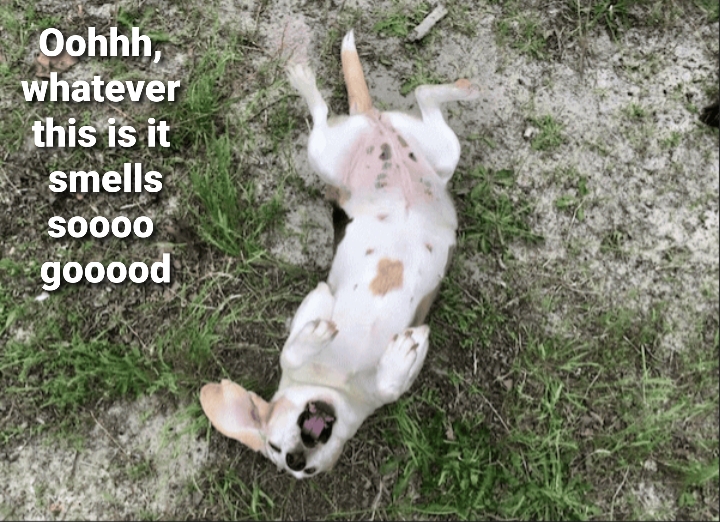 My girl is overly curious about skunks, which we have around our place, she's had to take 3 baths in the middle of the night in one month đŸ¤£
