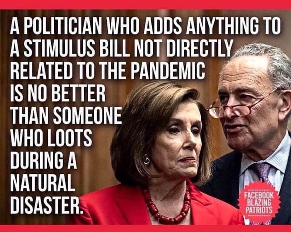All the pork for other countries and for special interest groups need taken out immediately it has nothing to do with the virus and helping people in this country and helping businesses. They even tried to sneak in a $25 million raise for them. We need term limits to get rid of the trash