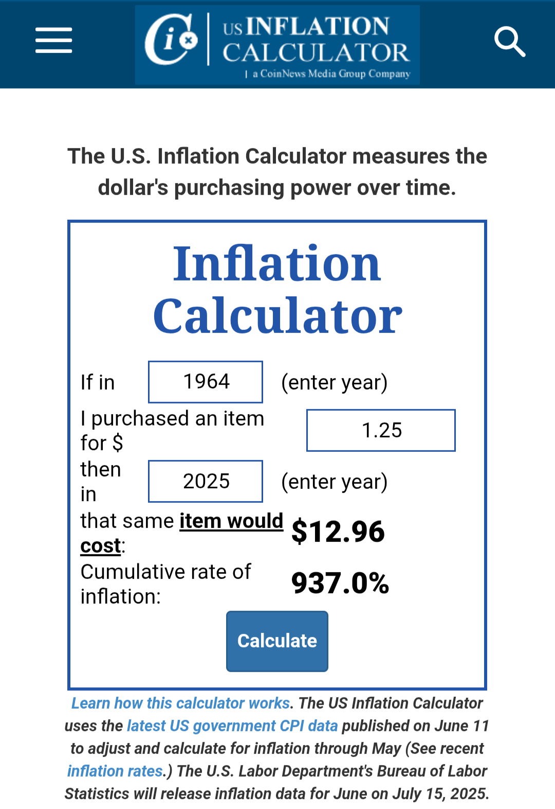 Even just adjusting for inflation, $1.25 in 1964 would have the same buying power as $12.96 in 2025.