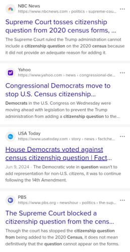 Democrats blocked Trump from adding the "Citizenship" question to the 2020 census.
