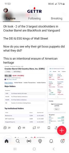 BlackRock and Vanguard are the 2 major stockholders of crackle barrel
