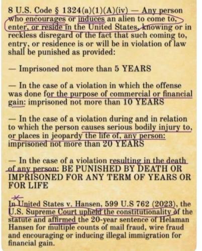 Harboring illegal aliens is an act of treason!!! Illegal aliens have zero rights in our country, period. For those that simply don’t know the law: