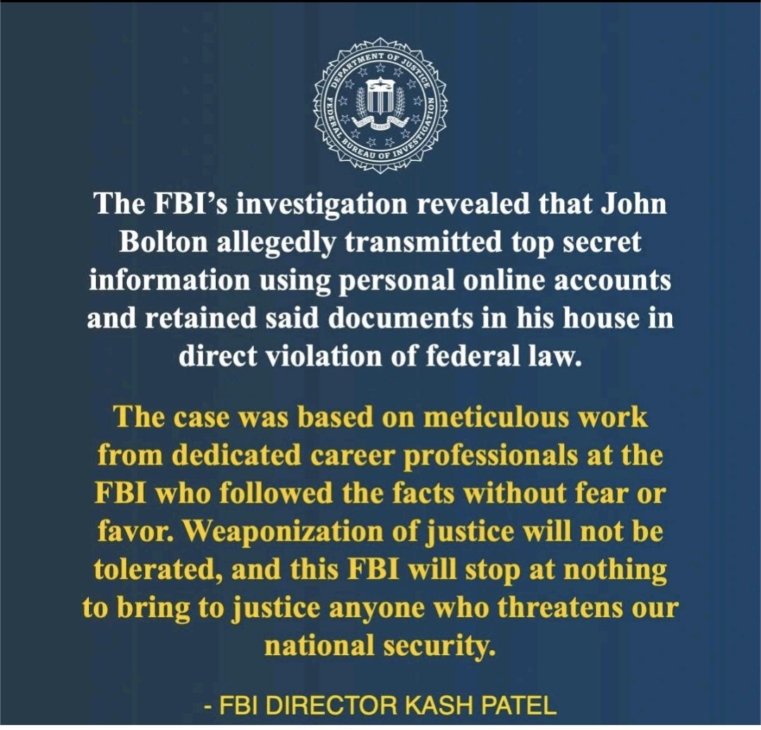 John Bolton Indicted on 18 COUNTS Under Espionage Act – Shared More Than 1,000 Pages of Highly Classified InformationTrump’s former National Security Advisor John Bolton was indicted by a grand jury in Maryland on Thursday.Download your own copy of the complete indictment at the link below.https://storage.courtlistener.com/recap/gov.uscourts.mdd.592874/gov.uscourts.mdd.592874.1.0_1.pdfCounts 1–8: Transmission of National Defense InformationCounts 9–18: Retention of National Defense InformationPresented as a Public Service by North American Continental Knights TemplarJoin the Resistance!https://mewe.com/join/knightstemplarna