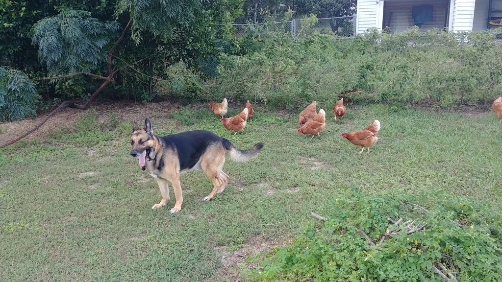 Fritz likes rides and keeping the chickens in check.lol