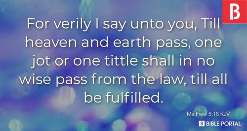 Matthew 5:18 For truly I tell you, until heaven and earth disappear, not the smallest letter, not the least stroke of a pen, will by any means disappear from the Law until everything is accomplished.