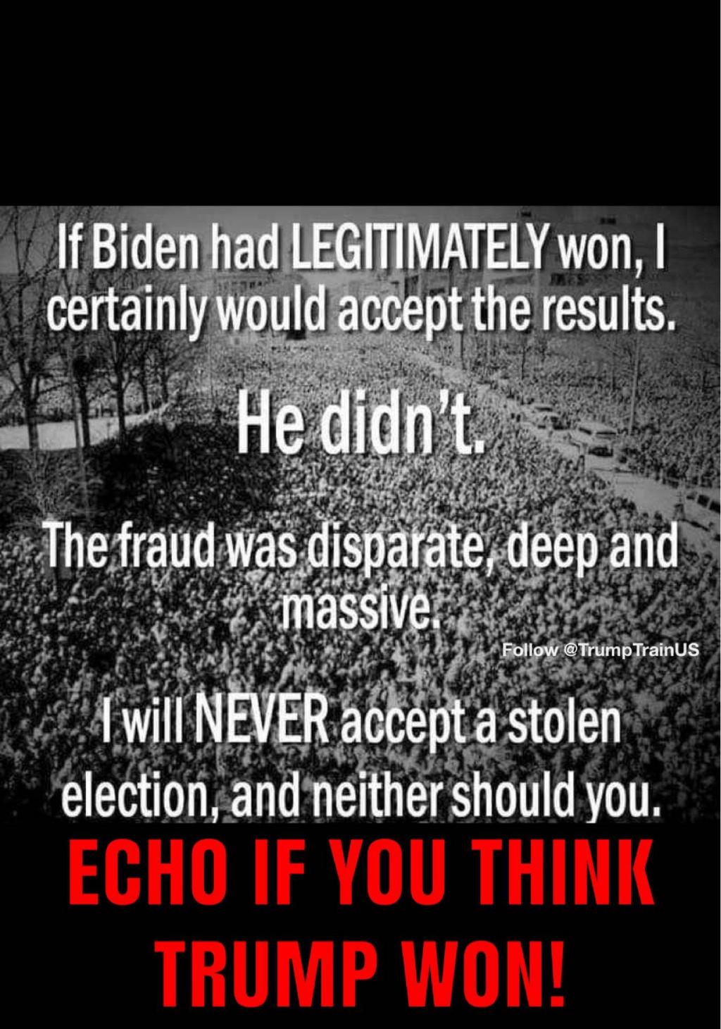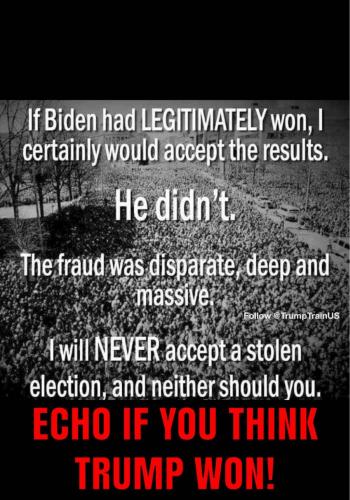 Nope. I'll never accept a fraud as POTUS. Especially one thats also a pedophile. Also, their will never be confidence in the voting system again for millions of Americans after this, especially if Biden gets sworn in. Yes, life goes on regardless but to say just pop off a few "expletives", except Bi... View More