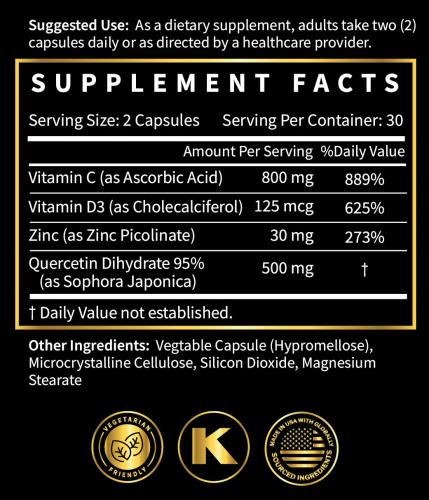Quercetin 500mg Vegetarian Capsules 120 Count | 1000mg Per Serving of 2 Capsules | Immune Support Supplements For Respiratory, Cellular Health & Seasonal Allergies | Quercitin for Men & Women Immunity500mg Quercetin is also the recommended dosage when used as an antiviral + 220mg of Zinc Sulfate. Quercetin breaks the barrier between virus cells and when used with 220mg of Zinc Sulfate allows the zinc to enter a virus cell and kill it. Only $25.49 for a 4 month supply if used at only 1 - 500mg capsule a day.https://a.co/d/07rJu1An