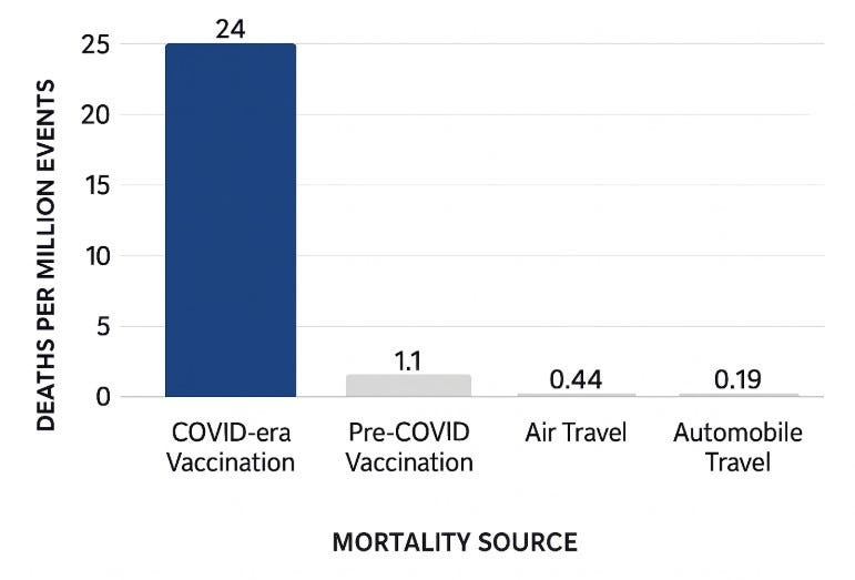 Mortality Associated with the U.S. Vaccination Program is up to 55× Higher Than Airplane Crash Deaths, up to 125× Higher Than Automobile-Travel Related Deaths