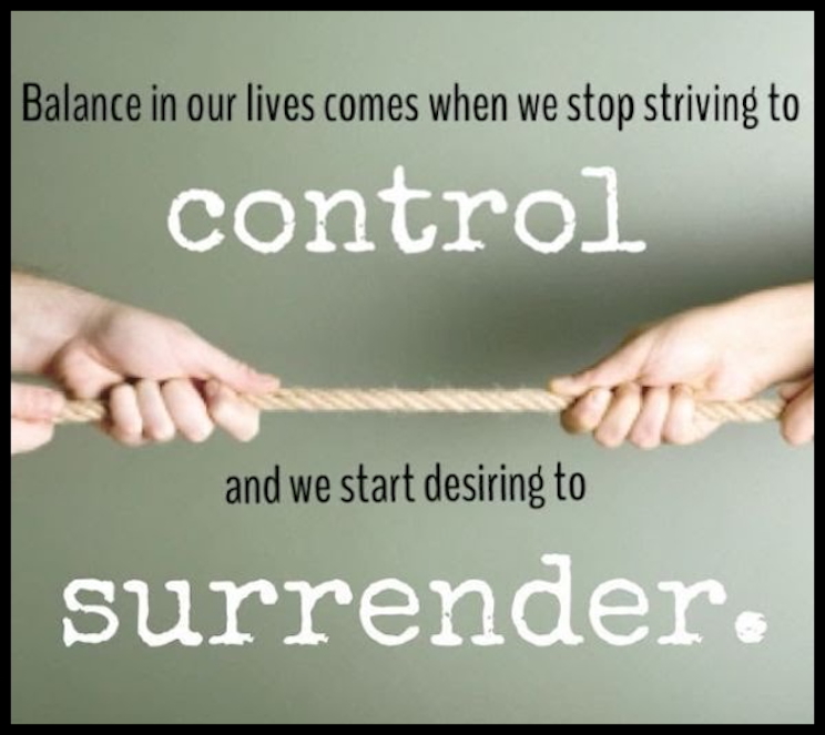 “Balance in our lives comes when we stop striving to control and we start desiring to surrender.” — Unknown Author