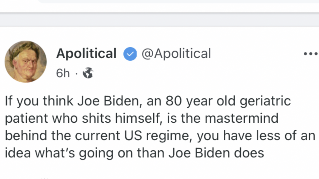 The thing about Biden is he is a natural born smart ass that rubs me the wrong way . I don't give a damned how old he is , he's a son of a bitch .