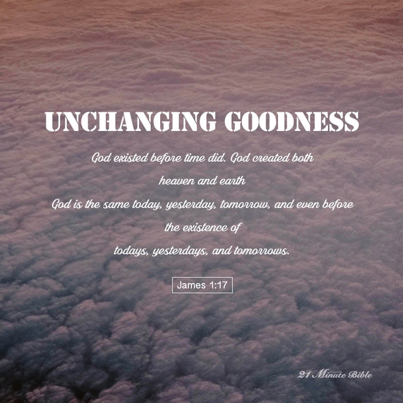 Imagine that you are in a business deal with someone. Now imagine that person keeps changing the terms of the deal and coming up with this and that excuse. You wouldn’t feel too comfortable, would you? James writes this verse to reinforce to the early church that God can be trusted because He never changes. God existed before time did. He created both heaven and earth. He is the same today, yesterday, tomorrow, and even before the existence of todays, yesterdays, and tomorrows! His covenant with humanity never changed and He has always kept His promises to us.